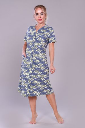Халат на пуговицах с коротким рукавом и рельефами. Борта переда отделаны планкой.