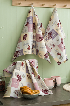 Набор из трех кухонных полотенец размером 60*48 с изображением забавных кофейных стаканчиков. Веселый кофейный принт поможет взбодриться даже утром понедельника. Полотенца с петелькой выполнены из высококачественной рогожки 100% хлопок, благодаря этому отлично впитывают влагу. Особое плетение ткани и стойкие натуральные краски придают изделию особую износостойкость. Полотенца сохраняют форму и яркость даже после многочисленных стирок.