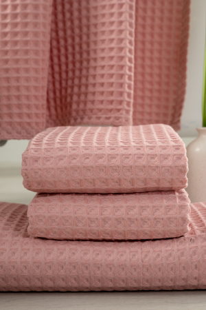 Отлично впитывающие и мягкие полотенца станут приятным дополнением любой ванной комнаты. Полотенца представлены в двух размерах: 140*70 и 50*70. Большое банное полотенце универсально и подойдет для пляжа, ванной, бани и сауны. Размер поменьше отлично подойдет для рук и лица. Изделия выполнены из высококачественного вафельного полотна Бохо, в составе которого только 100% хлопок. Благодаря этому полотенца гипоаллергенны и подойдут для всех членов семьи. Мягкие и пышные полотенца выполнены в минималистичном стиле, при этом подойдут под любой интерьер ванной. Попробуйте все цвета. Из-за особой структуры ткани и особой сложности пошива размер изделий может незначительно отличаться от заявленного (+-2см).