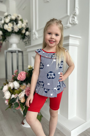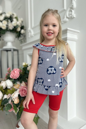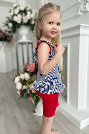 Маечка для девочки, по горловине и низу изделия оборка, на спинке завязки.