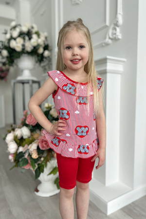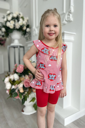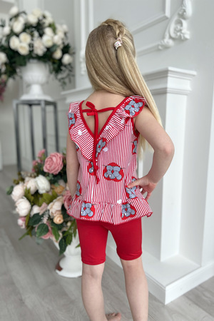 Маечка для девочки, по горловине и низу изделия оборка, на спинке завязки.