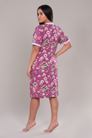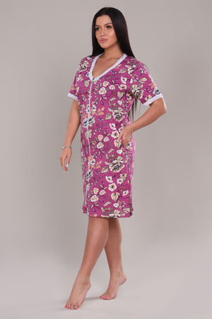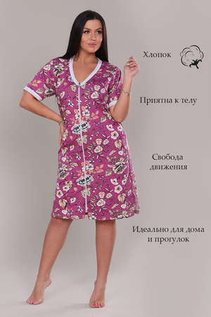 Халат женский оригинальной и очень красивой расцветки выполнен из ткани хлопок. Горловина и рукав обработаны широким кантом контрастного цвета. Халат на молнии, по бокам разрезы. Модель очень легкая, приятная к телу, подойдет для дома и отдыха.