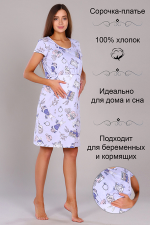 Сорочка женская с рукавом для беременных и кормящих. Данная модель выполнена из трикотажного полотна кулирка (хлопок 100%). Полочка состоит из двух частей, верхняя кокетка поднимается так, чтобы было удобно и без усилий покормить малыша.