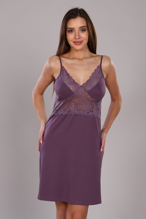 Сорочка на бретелях из мягкой вискозы, с эластичным кружевом. Натуральные материалы в составе позволят вашей коже дышать, что гарантирует вам комфортный сон.