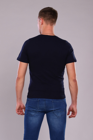 Футболка прямого кроя из эластичной ткани. На полочке печать
