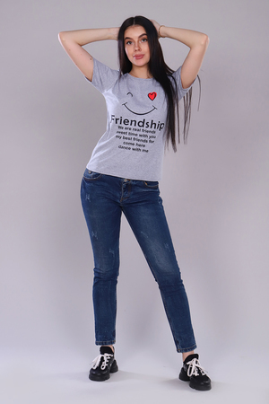 Футболка с молодёжным принтом, модель свободного покроя, горловина круглая, короткий рукав. Футболка - это базовая комфортная вещь женского гардероба, с помощью которой можно создать огромное количество разных по стилю аутфитов для девушек разных возрастов.