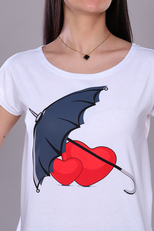 Футболка с молодёжным принтом, слегка приталенного силуэта, горловина в виде "лодочки", спущенная пройма. Это универсальная удобная вещь, присутствующая в любом гардеробе вне зависимости от возраста и фигуры обладательницы. Футболка с таким принтом - отличный подарок на ДЕНЬ ВЛЮБЛЁННЫХ.