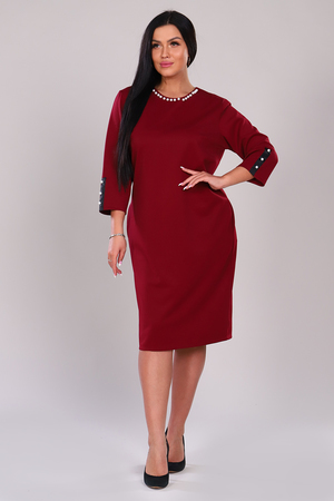 Платье-футляр в нарядном стиле. Эффектная горловина с отделкой в виде жемчуга. Рукав 3/4 с декоративной лентой и жемчугом. По бокам изделия карманы. На спине вшита потайная молния. Изделие средней длины. Стильное и удобное платье подойдет на любое мероприятие.