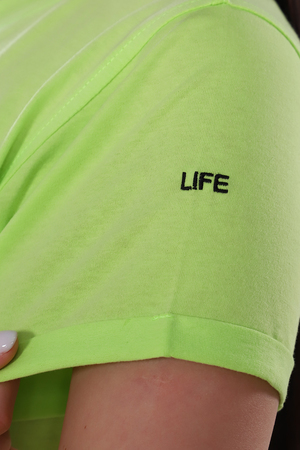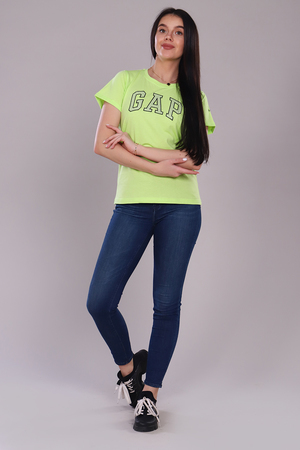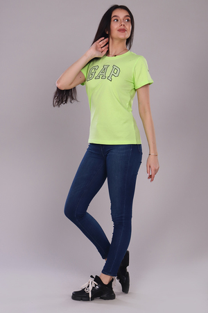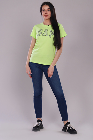 Футболка женская представлена в двух расцветках, изготовлена из приятного к телу 100% хлопка; имеет округлый ворот и короткий рукав. На груди нанесена крупная текстовая вышивка.