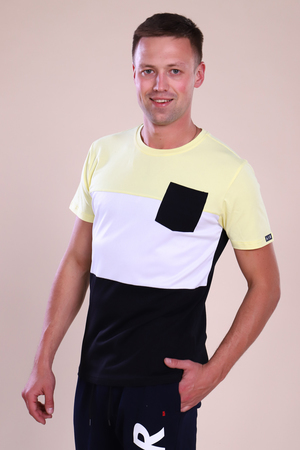 Футболка мужская с круглым воротником. Выполнена из трех цветов ткани, которые отлично сочетаются друг с другом. На полочке настрочной карман. На рукаве не большой принт AIR.