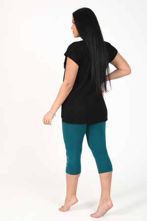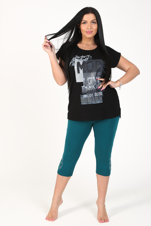 Бриджи облегающего силуэта из вискозы, длина чуть ниже колена, пояс на резинке, удобная высокая посадка. По переду в нижней части расположен декоративный узор из страз. Изготовлена модель из стрейчевого, комфортного, износостойкого трикотажного полотна в трёх расцветках на Ваш выбор.