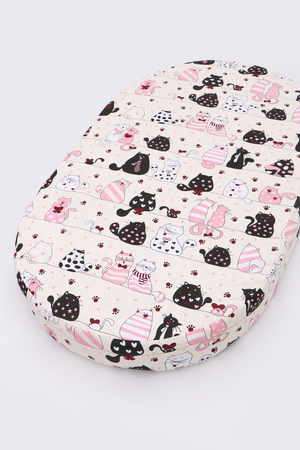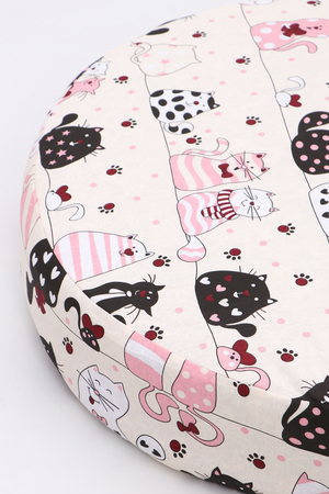 Простыня на резинке из бязи на овальный матрас 125х75, арт. ПРГ-ОВ/котики на бежевом