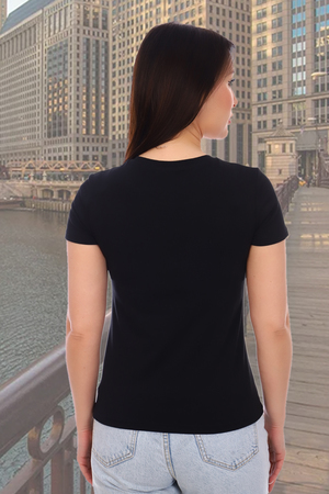 Футболка женская прилегающего силуэта. Выполнена из качественного хлопка с лайкрой. Оригинальная вышивка на полочке футболки является украшением модели.