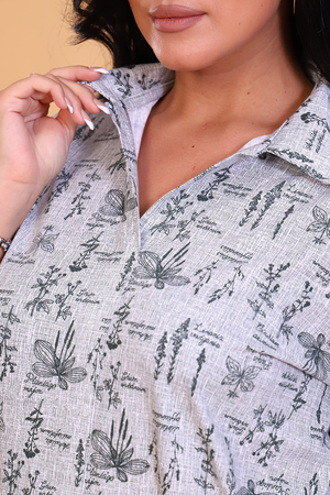 Женская туника-рубашка выполнена из 100% хлопчатобумажного полотна. Модель дополняет рубашечный воротник, планка, рукава с патами, закреплёнными декоративными пуговицами и резинка по низу. Благодаря стильности рубашки, нежной расцветке и хлопковому составу, Вы можете создать изысканный образ.