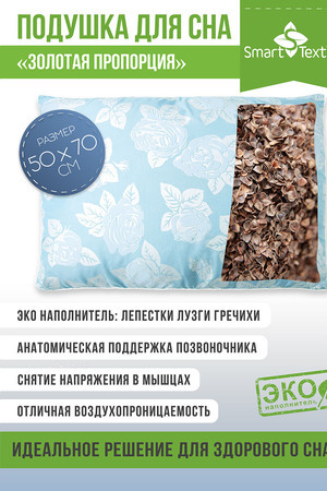 Анатомическая подушка с натуральным природным наполнителем – лепестками лузги гречихи, рекомендована людям, страдающим от храпа, имеющим проблемы со сном, склонным к головным болям, мигрени, и тем, кто нуждается в профилактике заболеваний шейно-воротниковой зоны, таких как шейный остеохондроз.