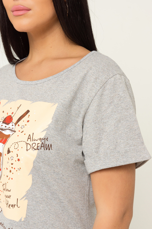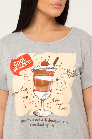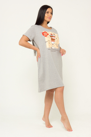 Нежные весенние цвета и оригинальный принт - все для милых дам и весеннего настроения!! Отличный подарок на весенние праздники и не только. Туника женская прямого силуэта, на полочке принт. Короткий вшивной рукав с отложным манжетом. Отлично подойдет для домашнего отдыха и сна
