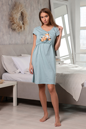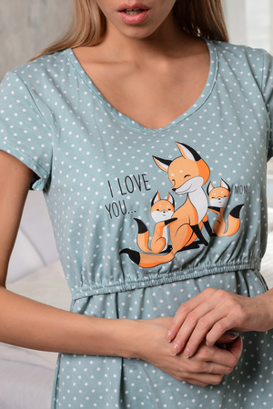 Сорочка женская с рукавом для беременных и кормящих. Данная модель выполнена из трикотажного полотна кулирка (хлопок 100%). Полочка состоит из двух частей, верхняя кокетка с принтом и поднимается так, чтобы было удобно и без усилий покормить малыша. Отлично подходит для сна и отдыха дома