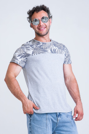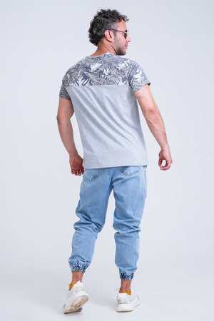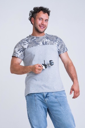 Мужская футболка с круглым вырезом горловины. Выполнена в двух расцветах. Спинка горловины усилена бейкой из основного полотна. Вырез горловины закрыт декоративной обтачкой.