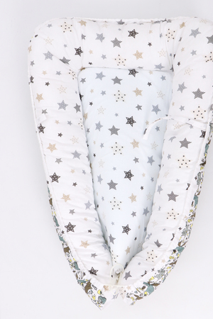 Детский кокон выполнен из 100% хлопка. Из двух тканей компаньонов. Наполнитель бортиков высококачественный, гипоалергенный холфайбер шарики. Для спального места используется файбер хард толщиной 20мм. Кокон со съемным чехлом на молнии, быстро снимается и стирается на бережной стирке. Сбоку петелька для пустышки. Кокон можно использовать от 0 до 8-10 мес. Размер кокона 90х60, спальное место 65х34. Кокон будет настоящим уютным гнездышком для вашего птенчика-малыша, согреет, успокоит и убаюкает. Кокон будет отличным подарком на рождение малыша и любой праздник.