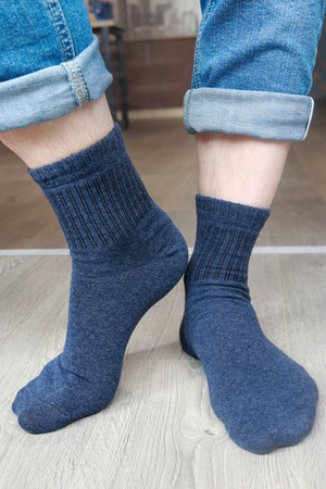 Набор мужских носков. В комплекте 6 пар. Светло-серая, темно-серая и синяя расцветки, полоски на паголенке. В продаже имеются аналогичные подростковые носки Феникс