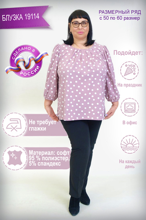 Элегантная блуза со складками по горловине и разрезами по бокам придётся по душе каждой женщине. Рукав 7/8 со сборкой по окату, низ рукава собран на резиночку. Нежная, практичная и женственная блуза станет истинным украшением любого образа! Такая вещь будет гармонично сочетаться не только с классическими брюками или юбками, также можно уверенно одеть и с джинсами.