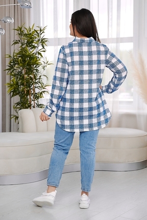 Туника женская прямого силуэта с отложным воротником. Застежка на петли - пуговицы. Рукав длинный, втачной с манжетой. Низ туники фигурный, спинка несколько длиннее полочки. На полочке нагрудный карман. На модели 52 размер