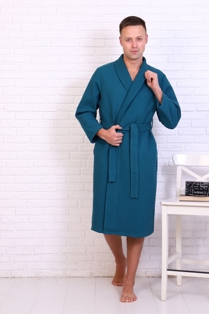 Вафельный халат воротник шаль. Рукав длинный. Боковые карманы. Размерный ряд от 44/46 до 64/66. Плотность вафельного полотна 242 гр. Доступна возможность розничного приобретения. При первой стирке изделие дает усадку, на размер, это нужно учесть при выборе размера! Рекомендация по уходу и эксплуатации за изделием - бережная ручная стирка при температуре не более 30 С, без отжима. Для безупречного разглаживания складок и заломов изделие должно быть влажным.