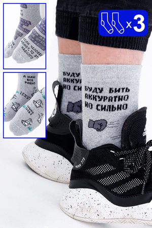Набор мужских носков с оригинальными надписями. В упаковке 3 пары в пакете