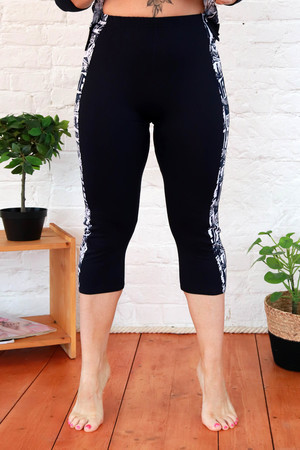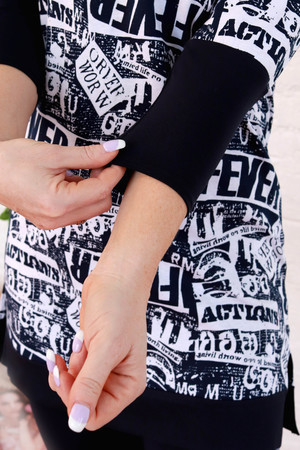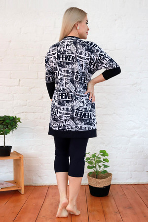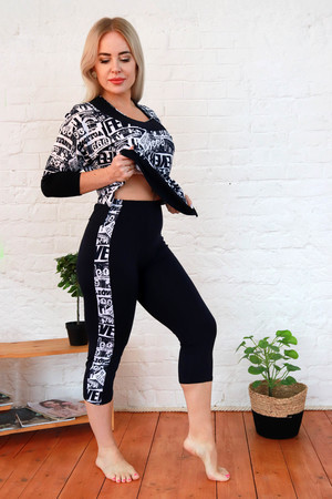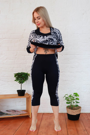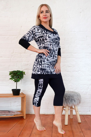 Костюм из кулирки женский из качественного трикотажного полотна, состоит из туники и бридж. Темные бриджи, длина чуть ниже коленей. Повседневный костюм.