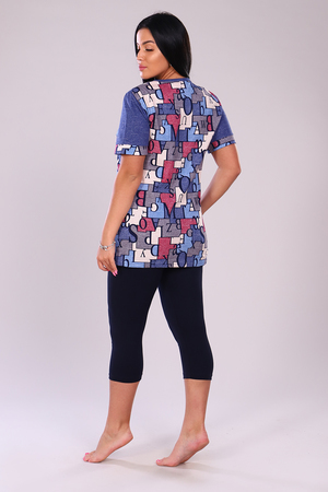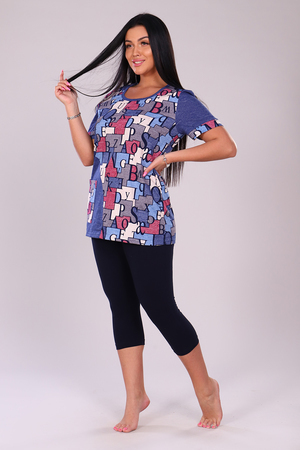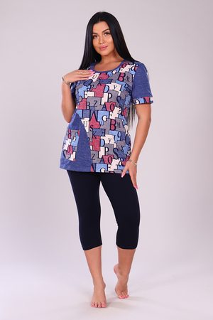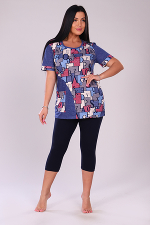 Ирина Анатольевна02.05.2022 в 03:17Костюмчик понравился! Футболка классная, я даже сказала бы не футболка, а кофта. Очень качественная, расцветка сделана под джинсу, на рукавах манжетик из основной ткани, горловина обработана отлично тканью-компаньоном, карман справа на тканевой врезке, очень симпатично и стильно смотрится. На мой рост около 160 см, как туника, выше колена см на 15. Штанцы не в облипку, немного свободно.
