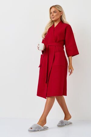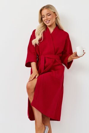 Вафельный халат-кимоно. Рукав 3/4. Карманы накладные. Воротник планка. Размерный ряд с 48/50 по 60/62. Плотность вафельного полотна 242 гр. Доступна возможность розничного приобретения. При первой стирке изделие дает усадку, это нужно учесть при выборе размера! Рекомендация по уходу и эксплуатации за изделием - бережная ручная стирка при температуре не более 30 С, без отжима. Для безупречного разглаживания складок и заломов изделие должно быть влажным.