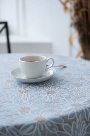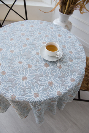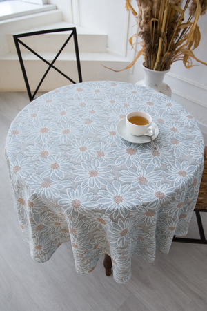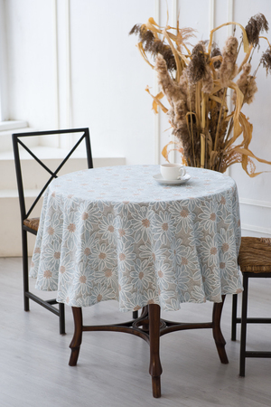 Круглая скатерть София диаметром 150см отлично подойдет для классического круглого кухонного стола. Изделие выполнено из высококачественной рогожки плотностью 170 грамм, что позволяет использовать ее ежедневно и часто стирать. Стильные ромашки на сером фоне подойдут под любой интерьер.