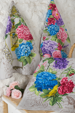 Набор из трех полотенец размером 48*60 с изображением пышных цветов. В наборе три разных полотенца сочетающихся друг с другом. Яркие красные и синие цветы отлично смотрятся на сером фоне. К каждому полотенцу пришита петелька.