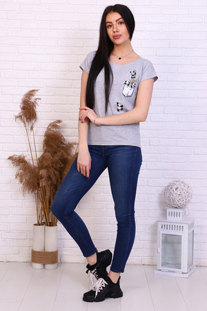 Футболка с молодёжным принтом из кулирки с лайкрой качества пенье. Модель слегка приталенного силуэта, горловина в виде лодочки, спущенная пройма, спинка слегка удлинена. Футболка - это базовая комфортная вещь женского гардероба, её надевают в спортзал, в офис и даже на вечеринку.