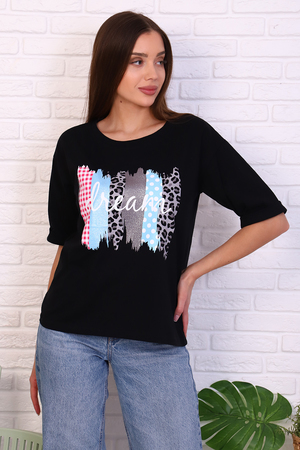 Туника удлиненная женская в стиле oversize имеет неповторимый свободный крой. Этот стиль подходит для любой женщины, ведь он может скрыть недостатки фигуры и подчеркнуть ее достоинства. Натуральный состав из 100% хлопка обеспечит вам комфорт и хорошее настроение. Удобный рукав до локтя. Принт с блестками не оставит никого равнодушным. Невозможно описать удобство и прелесть вещей в этом стиле, чтобы это понять, их просто нужно носить. Данную модель туники можно надеть как с классической юбкой и брюками, так и с джинсами и леггинсами.