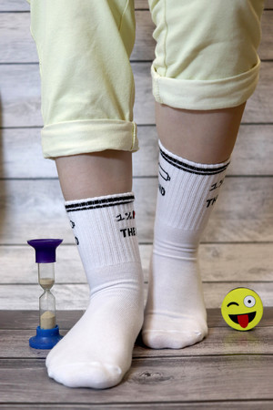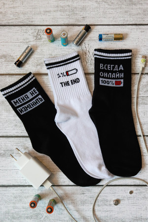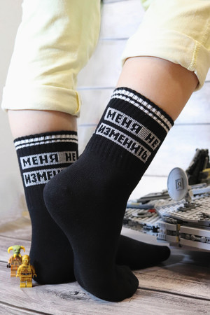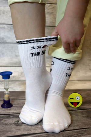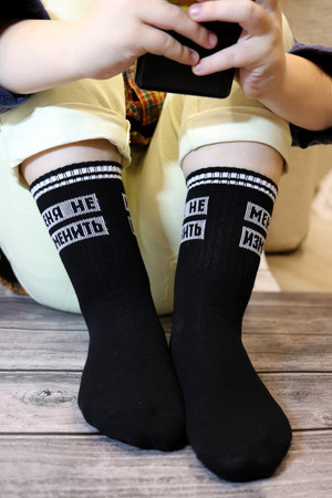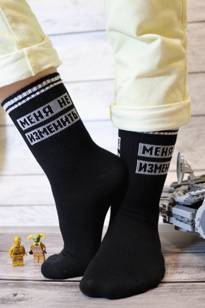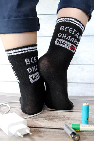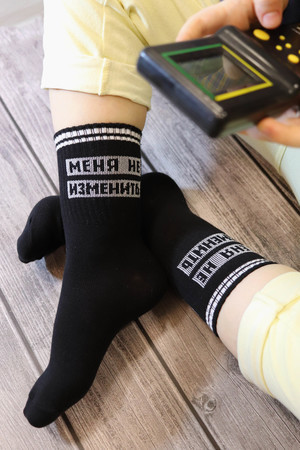 Высокие подростковые носки с широкой резинкой, благодаря которой носки не скатываются и не съезжают. По верху вывязаны 2 контрастные полосы, надписи на резинке. В упаковке 3 пары - по 1 паре каждого вида