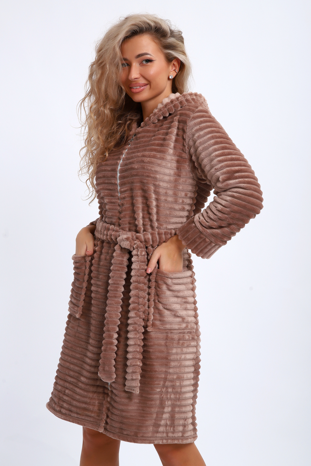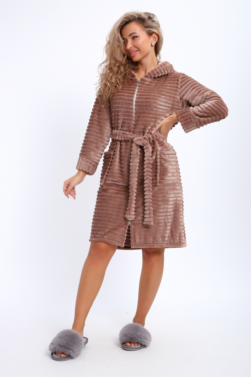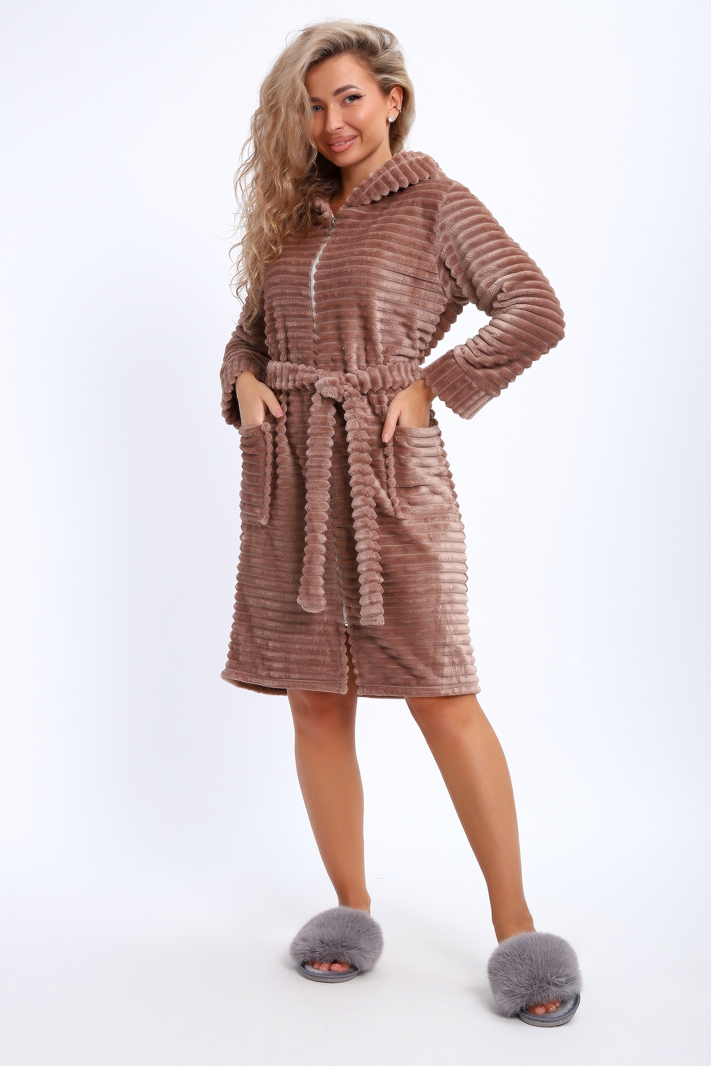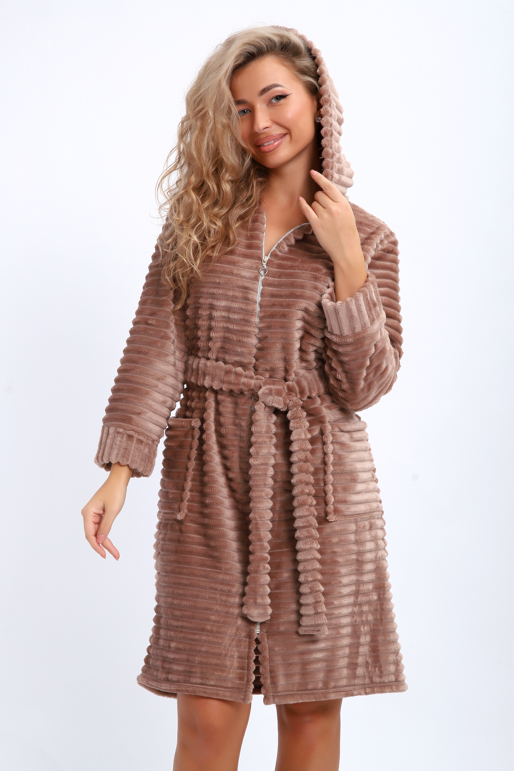 Халат женский домашний - практичный и уютный вариант для дома. Халат сшит из самого мягкого и нежного велсофта. Модель халата c капюшоном - неотъемлемая часть гардероба для тех, кто любит проводить вечера в комфорте и тепле.