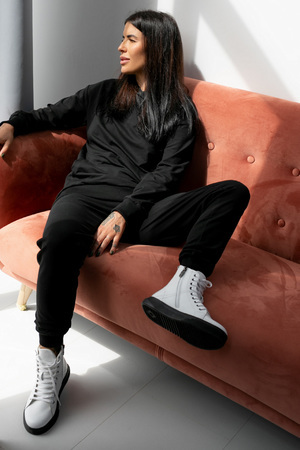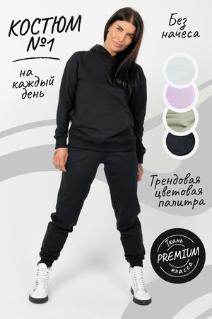 Женский спортивный костюм с капюшоном - практичный образ как на каждый день, так и для поездок и активного отдыха. Верх - худи оверсайз, низ - брюки джоггеры с высокой посадкой. Костюм спортивный женский выполнен из футера высокого качества 2-х нитки без начеса (производство Турция). Костюм для высоких, костюм для беременных, для йоги, костюм для прогулок. Футер - натуральный хлопок с небольшим количеством полиэстера для поддержания формы и эластичности изделия. Дышащий, мягкий и комфортный костюм спортшик благодаря своему натуральному составу ткани, прекрасно подходит как для теплой, так и для прохладной погоды. Выбирая этот базовый спортивный костюм, Вы получаете универсальный стильный худи оверсайз с карманом кенгуру, который можно сочетать с джинсами и юбками, а так же удобные, стильные брюки джоггеры. Карман кенгуру на худи обработан закрепочными строчками.