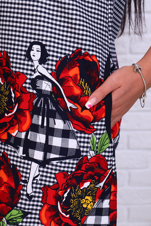 Халат женский на молнии, полуприлегающего силуэта из купонной ткани. Манжеты рукавов и отделочный элемент на полочке выполнены из купона, декоративная вставка вокруг горловины обрамлен узким кантом. Карманы на халате расположены в боковых швах.