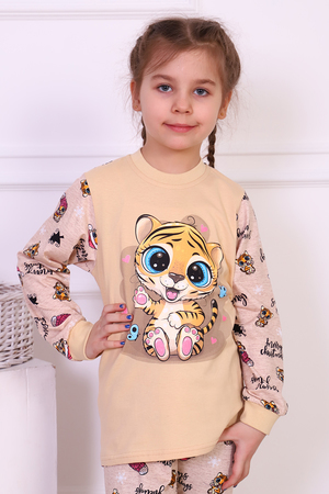 Детская пижама из кофты с длинным рукавом и штанишек выполнена из 100% хлопка, в свободном полуприлегающем стиле. В такой одежде вашему малышу будет необычайно комфортно и удобно. Эластичные манжеты не препятствуют движениям. Ткань мягкая, подойдет для ежедневного использования. Яркий и красивый принт непременно порадует каждого ребенка. Верх и низ комплекта можно сочетать с другими вещами из гардероба малыша.