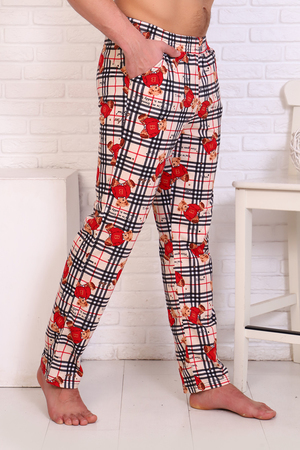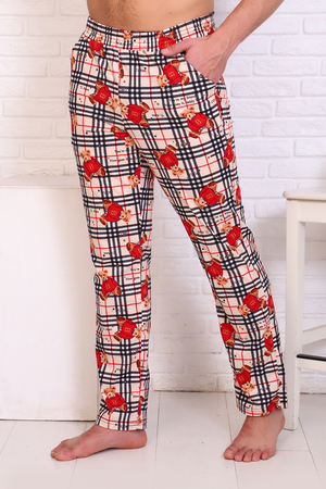 Мужские брюки являются идеальным вариантом для сна и отдыха, а также прекрасно подойдут в виде домашней одежды. Мужские брюки приятны к телу, а благодаря свободному крою не сковывают движения. Выполнены из 100% хлопка.