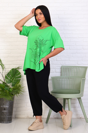 Удобный и практичный красивый костюм из вискозы. Джемпер свободного кроя и удлиненные бриджи на завязках.