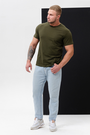 Классическая мужская однотонная футболка. Производство Узбекистан.