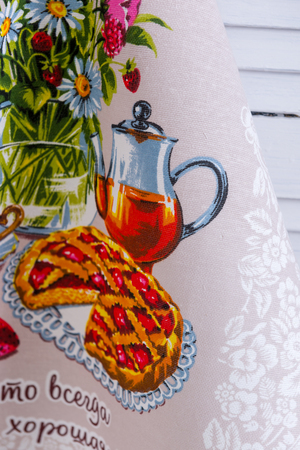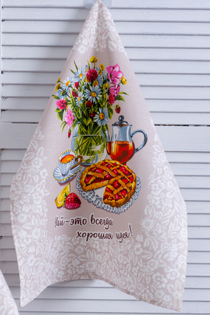 Три полотенца из рогожки с веселыми надписями и изображением самовара, чашек, баранок и фруктов собраны в кухонный набор. Такой комплект полотенец создаст атмосферу радости и уюта. Все полотенца размером 60*48, к каждому из них пришита петелька.