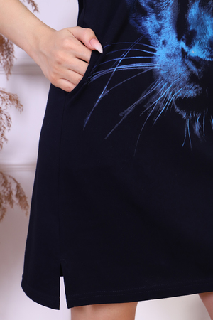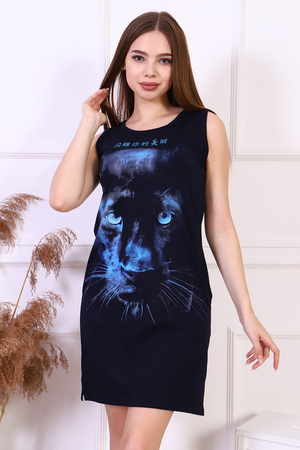 Сарафан женский прямого кроя, стильная печать. Кулирное полотно легкое в уходе, 100% хлопок. Эта модель прекрасно подходит для отдыха, прогулок и дома. В этом сарафане вам будет удобно и комфортно.