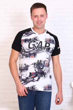 Футболка мужская изготовлена из качественной ткани с геометрическим рисунком.