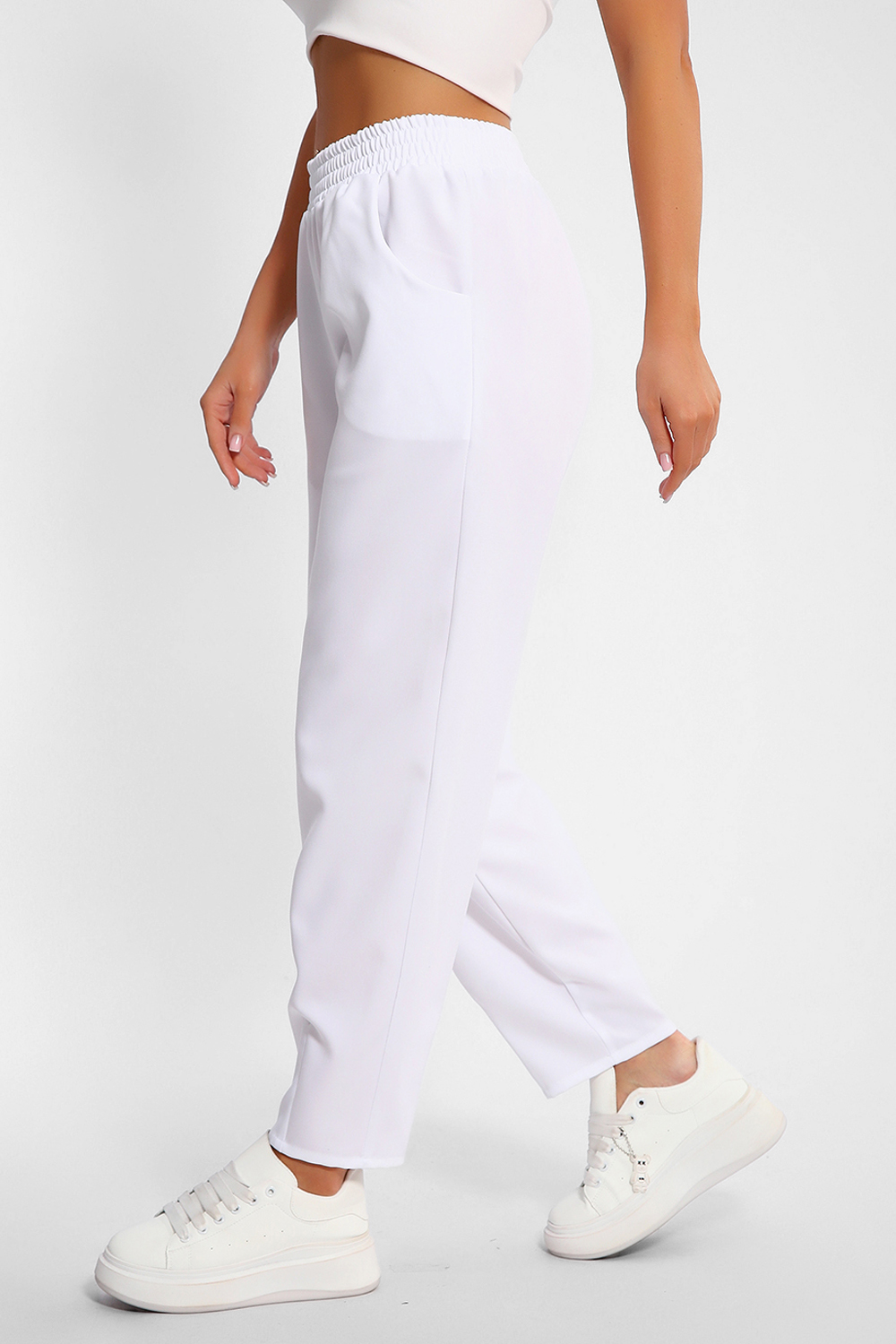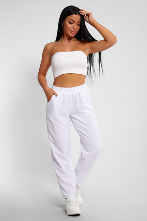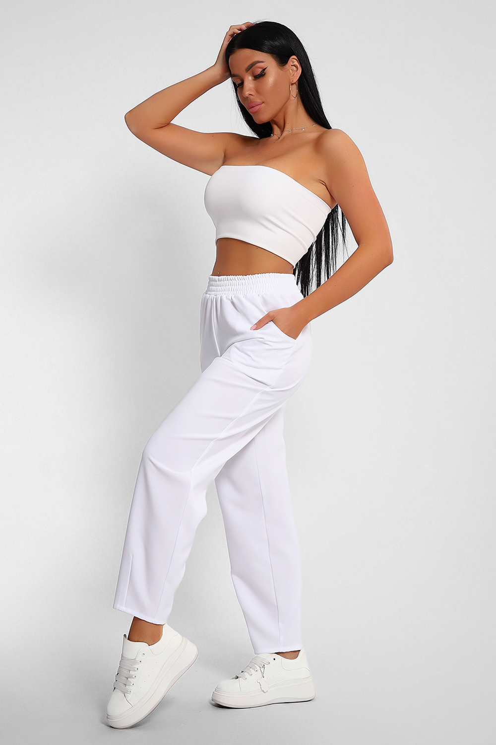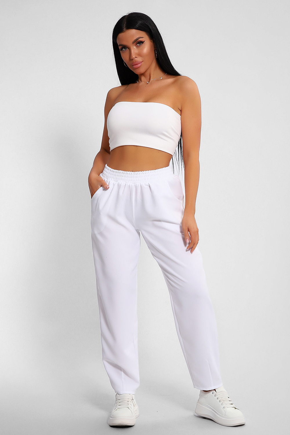 Модные женские брюки-бананы из смесовой ткани с содержанием льна. Свободные, зауженные к низу с помощью вытачек, широкий пояс на резинке, по бокам внутренние карманы. Длина брюк до щиколотки (рост модели 165 см). Очень комфортны и удобны в носке, не мнутся, отлично смотрятся со спортивной обувью.
