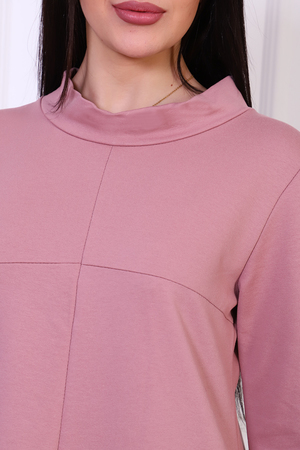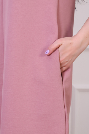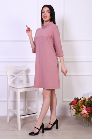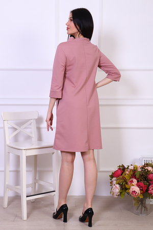 Платье женское из трикотажа футера с лайкрой качества карде, круглая горловина в виде стойки, втачной рукав 3/4 на манжете, по груди отрезная кокетка, в боковых швах удобные карманы. Модель А-силуэта смотрится очень женственно и универсально в плане скрытия недостатков фигуры, выглядит всегда модно и актуально.