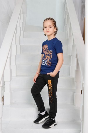 Штаны для детей дошкольного и младшего школьного возраста из трикотажного полотна футер с лайкрой и кашкорсе. Штаны на поясе из эластичного трикотажа с резинкой внутри, низ брюк на манжете из эластичного трикотажа. На передней части штанин боковые карманы.