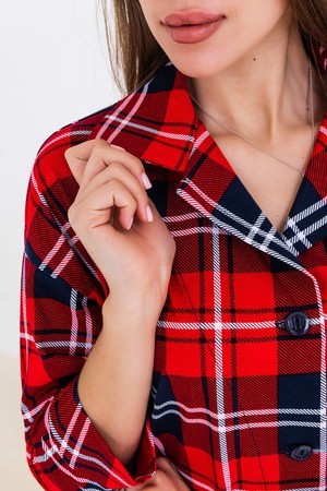 Халат на пуговицах свободного рубашечного кроя. Спущенная пройма. Рукава с манжетами. На груди карман. Низ халата обработан широкой бейкой. Длина рукава в замерах указана от точки основания шеи. Модная в этом сезоне клетка не оставит Вас без внимания, а свободный крой позволит чувствовать себя комфортно и уверенно.